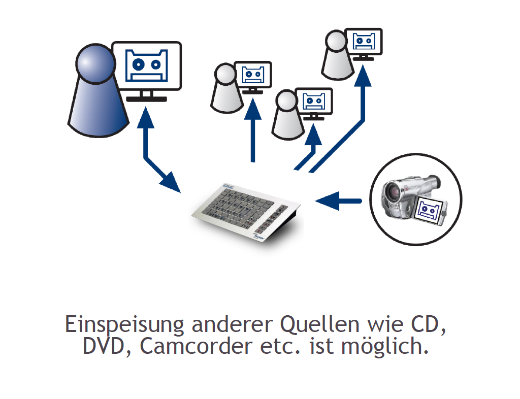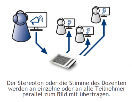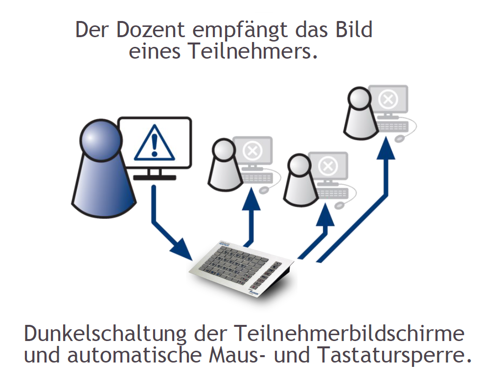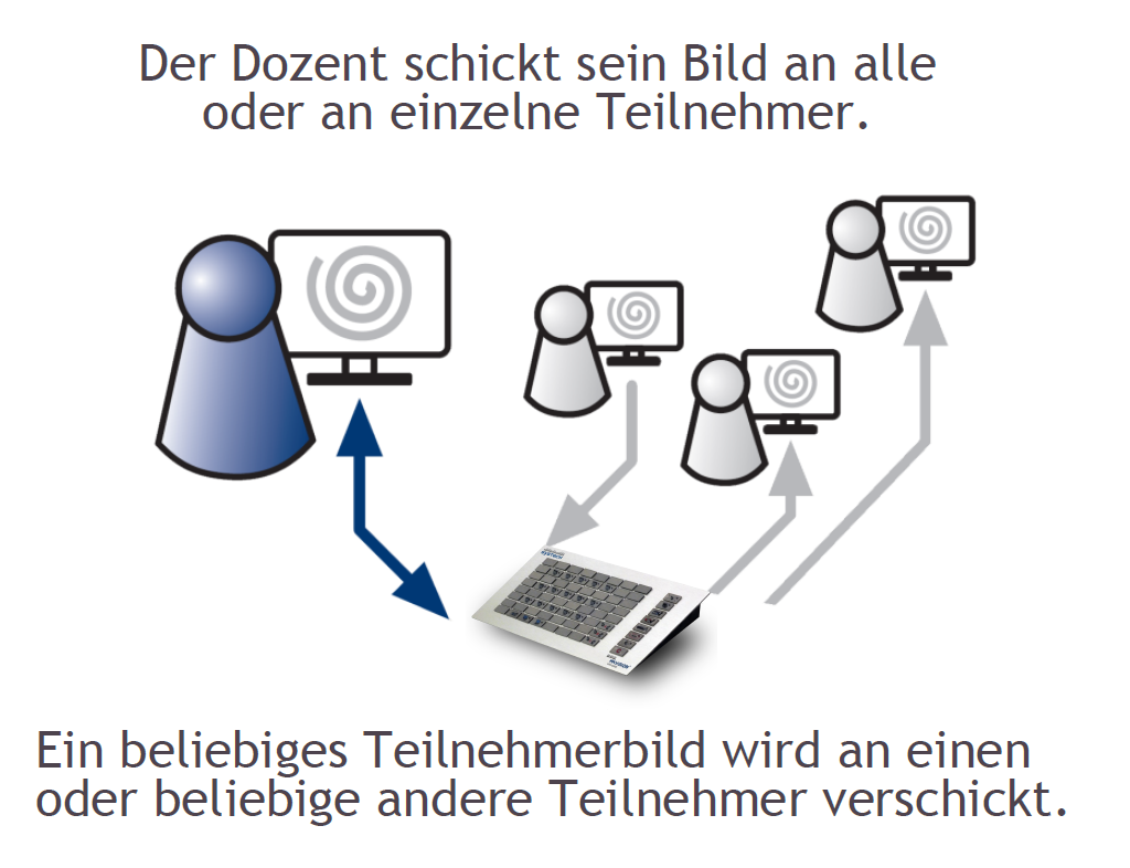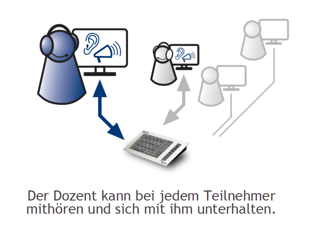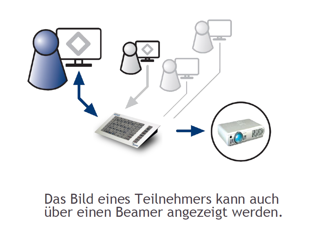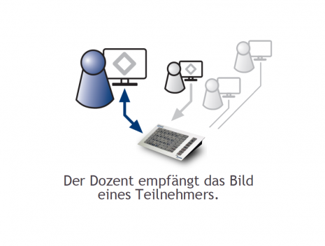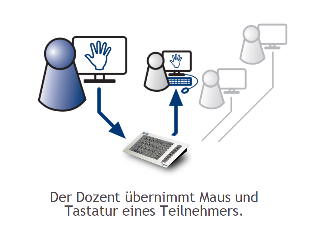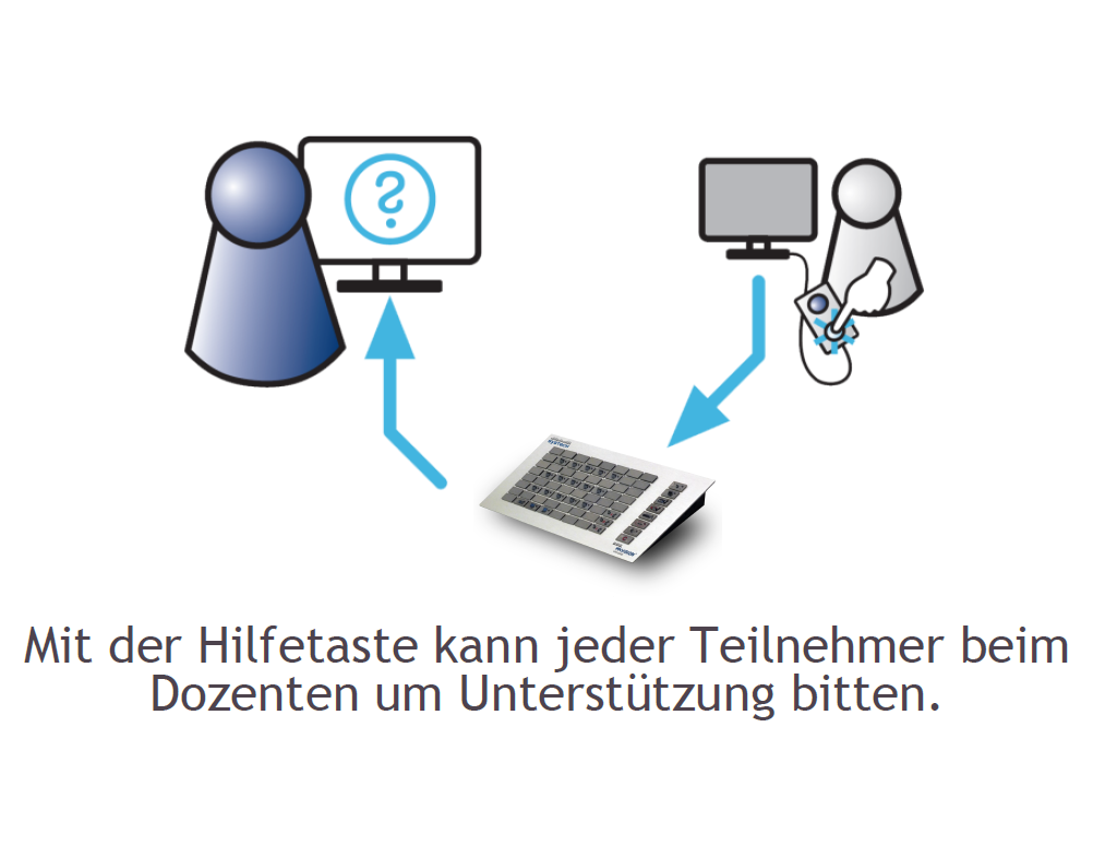 Die Raumtastatur zeigt die Sitzanordnung der Teilnehmer im Raum. Dadurch behält der Dozent den Überblick und kann gezielt einzelne Teilnehmer anwählen.